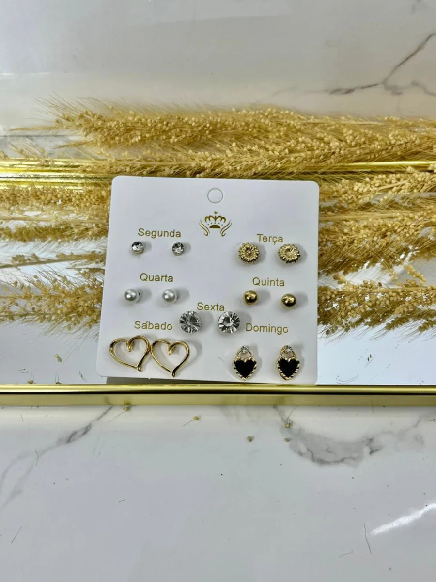 Luce diferente cada día con nuestro elegante semanario de aretes. Diseñado para realzar tu estilo, incluye 7 pares únicos perfectos para combinar con cualquier look. Ideales para regalar o consentirte, elaborados con materiales hipoalergénicos y acabados brillantes de alta calidad. ✨